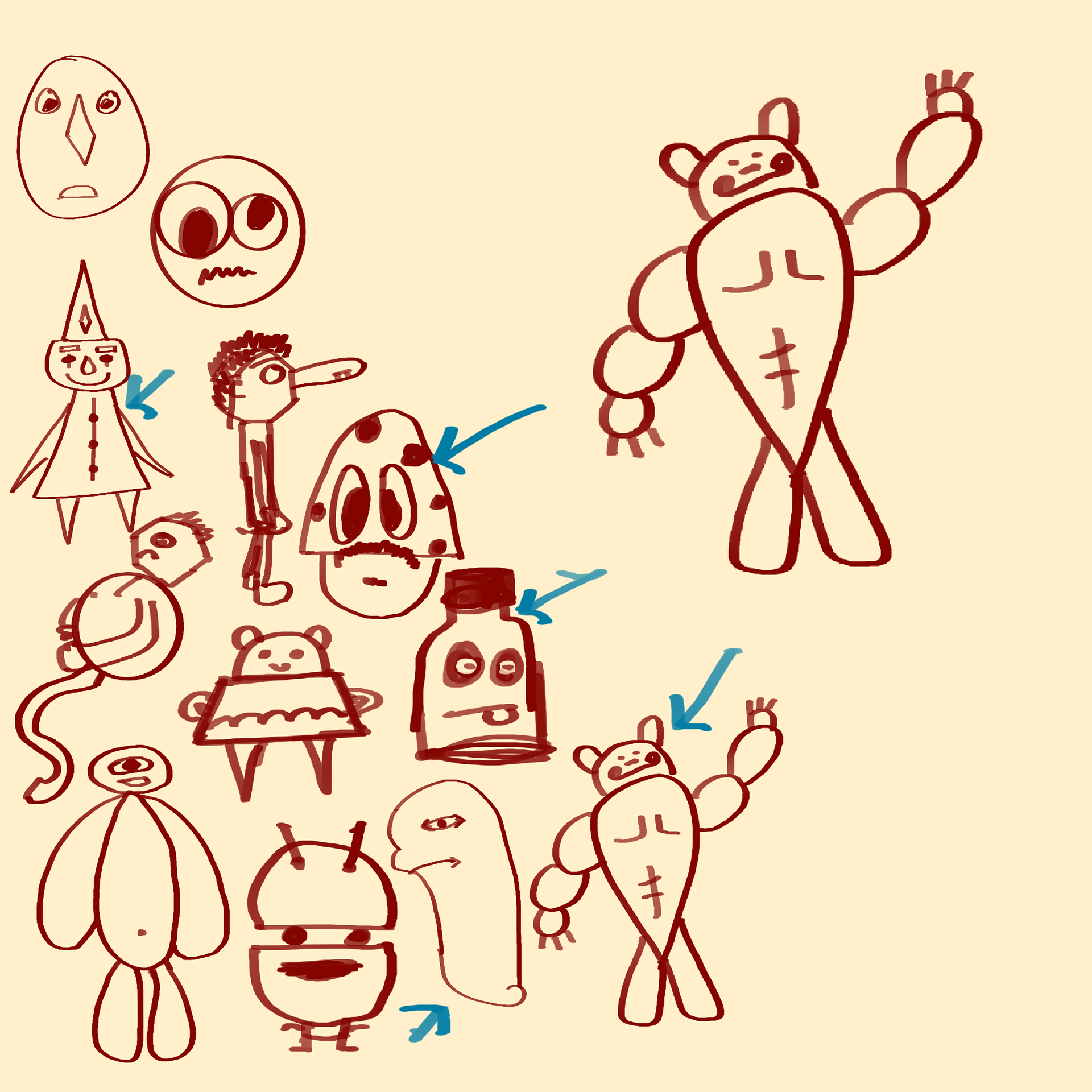 Then we had to whip up characters from those shapes and pick the one we liked the most.