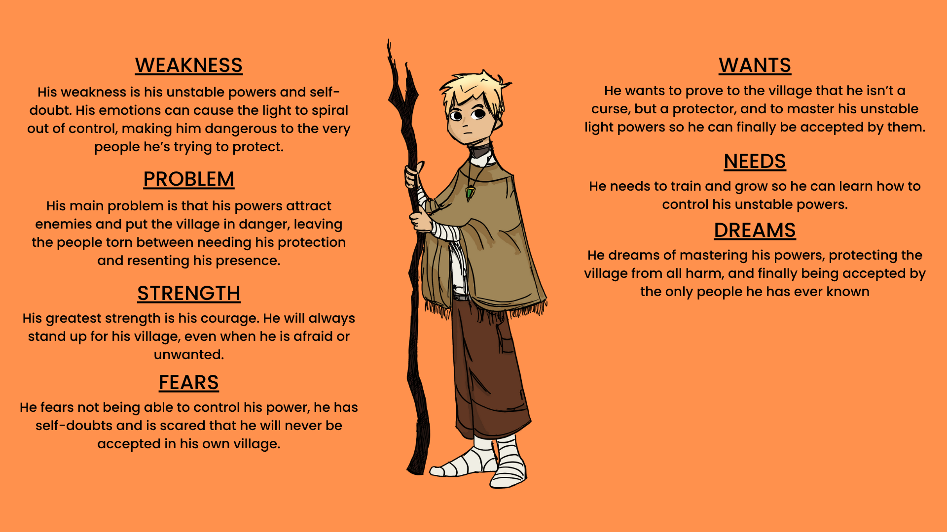 Below you will see my character sheet (alternative to the mind map, but has all relevant information)