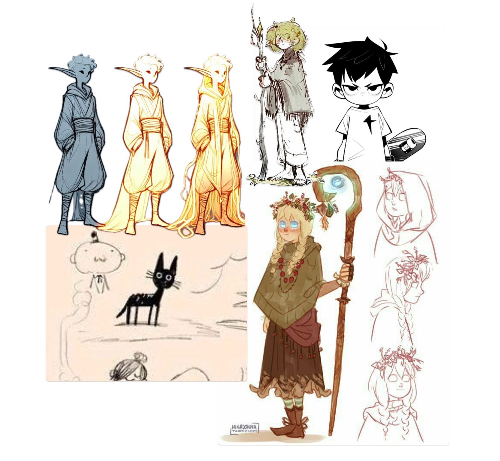 I found a pose I liked through Pinterest and curated a mood-board to reference whilst I drew my character, I also thought about giving the character a little stylised cat but first I thought I would focus on the main character itself.