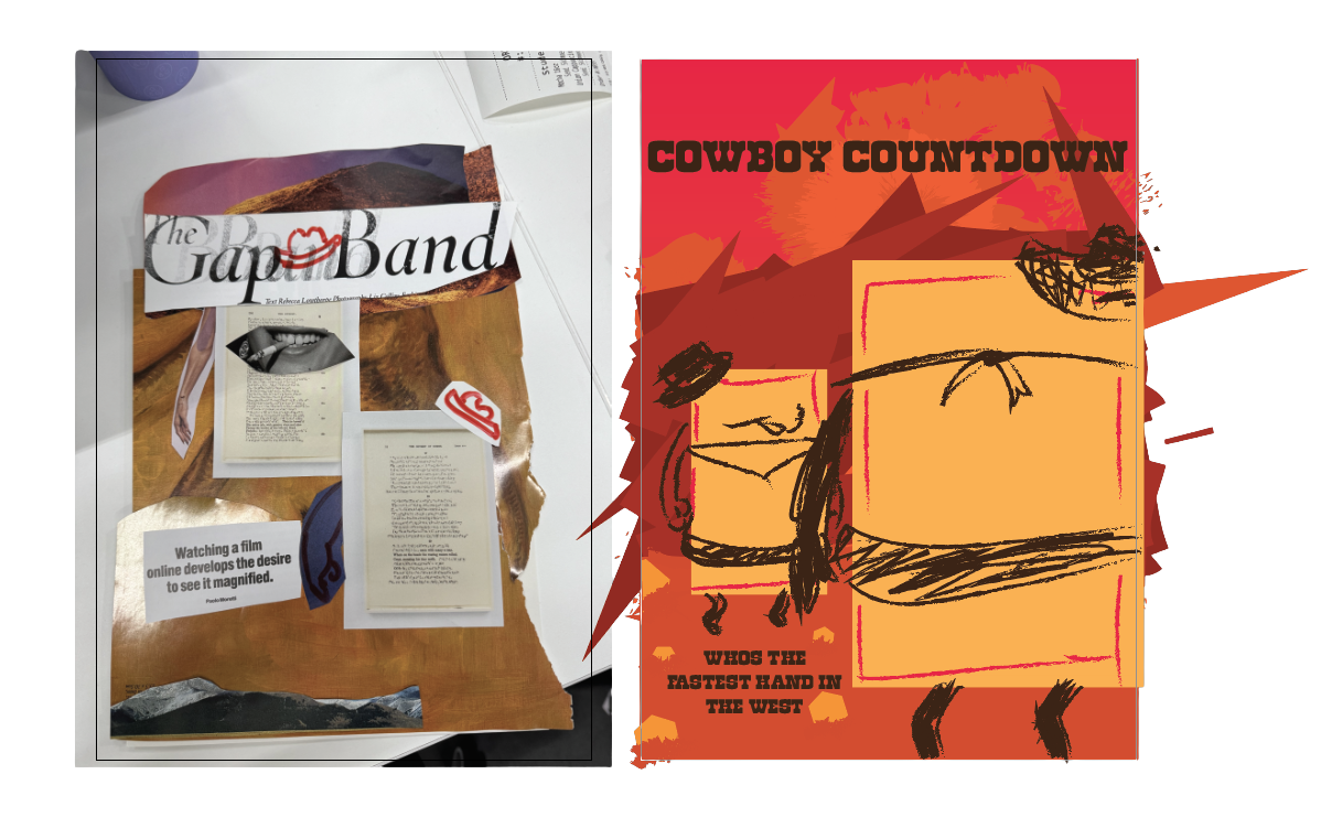 Refining in Adobe Illustrator and using the Collage (left) as a base to create box design (right).