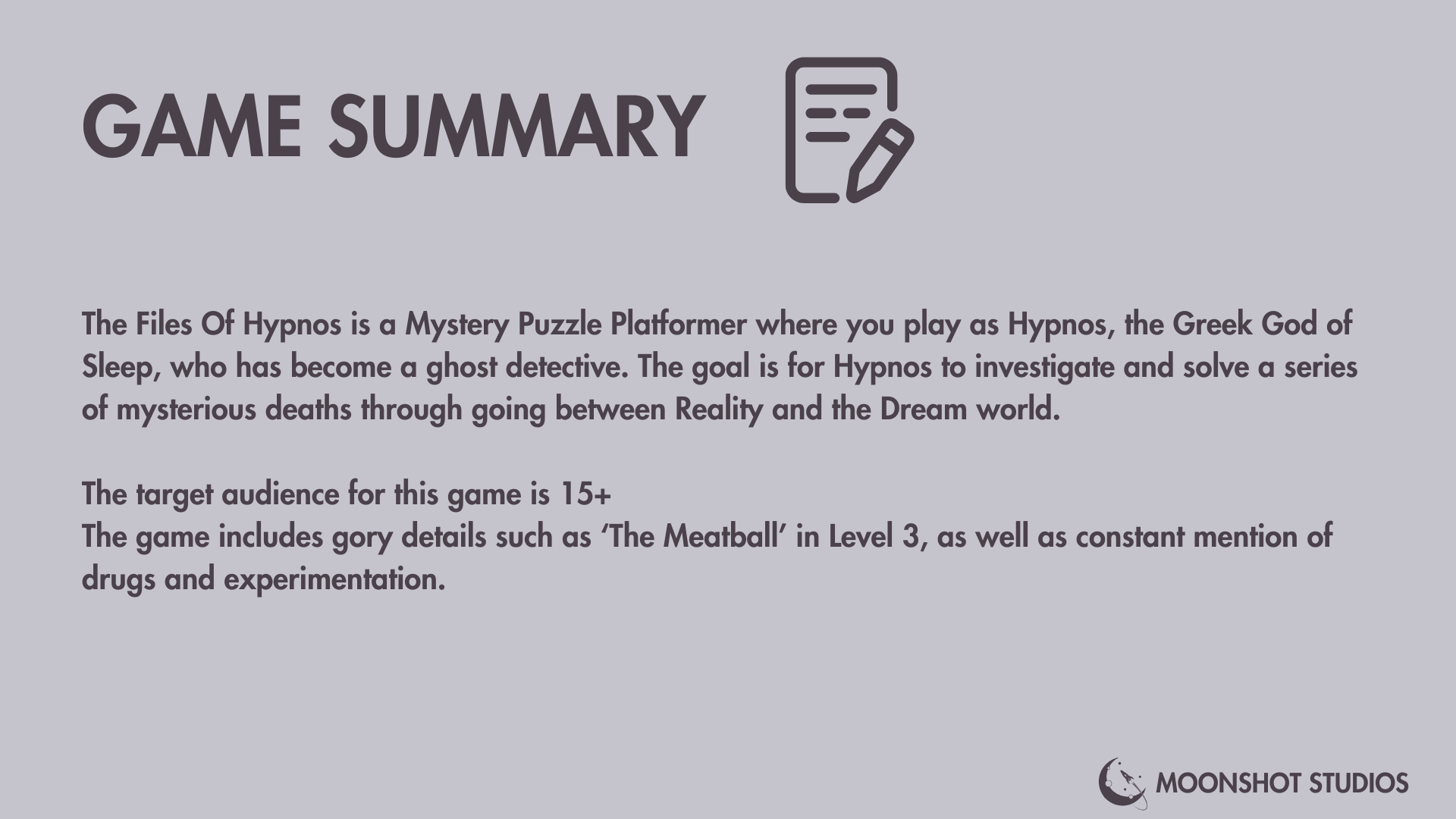 My Pitch, The Trials of Hypnos and Paige's Pitch, The Ghost Detective Game