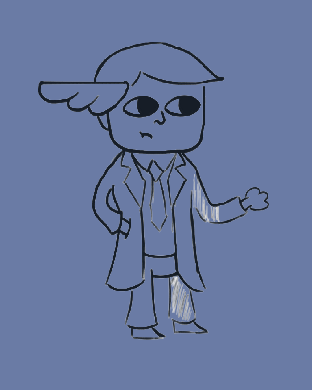 Since our main art style is inspired by night in the woods, I experimented using the night in the woods character fundamentals breakdown I created in the previous weeks to create my human character Hypnos!